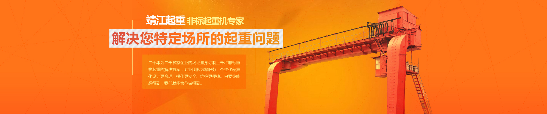 20余年專注起重機(jī)研發(fā)、制造、安裝和售后服務(wù),為你量身定制,解決特定場所物料搬運(yùn)問題。